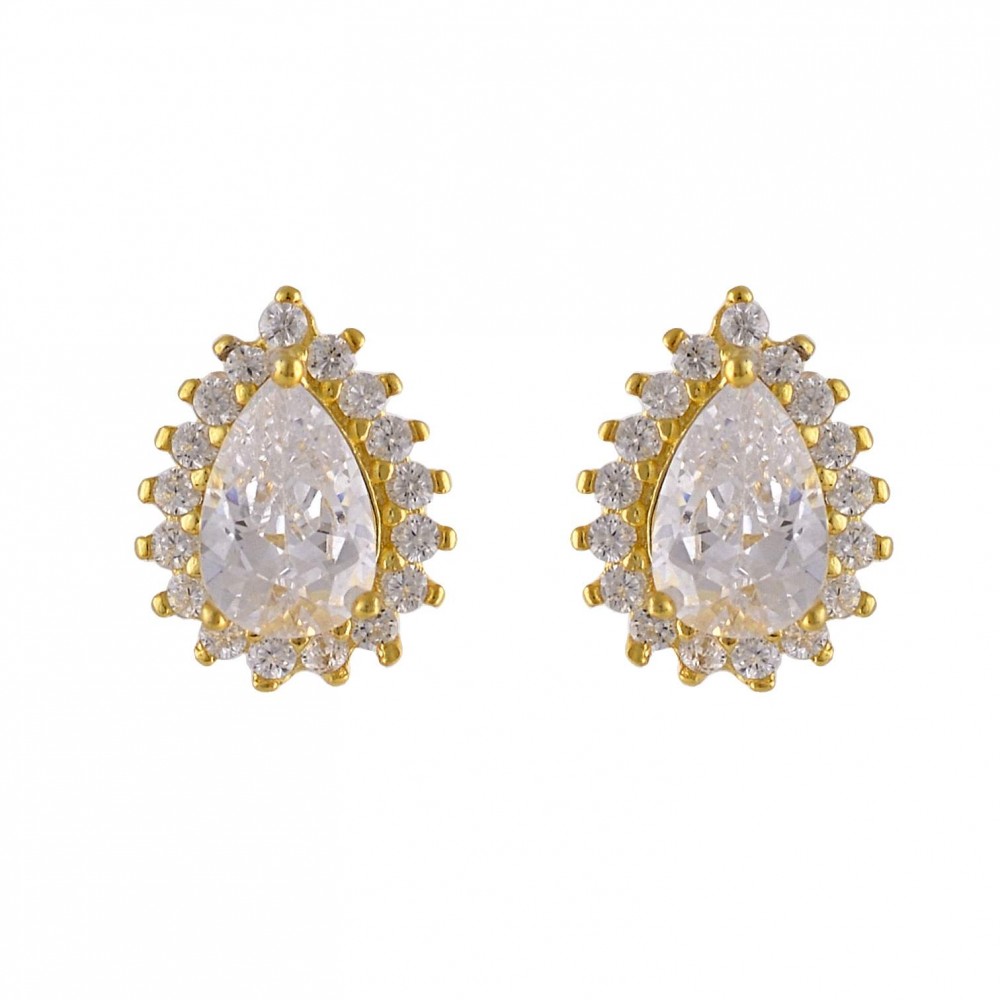 Ασημένια σκουλαρίκια σε κίτρινο χρώμα με πέτρες ζιργκόν.