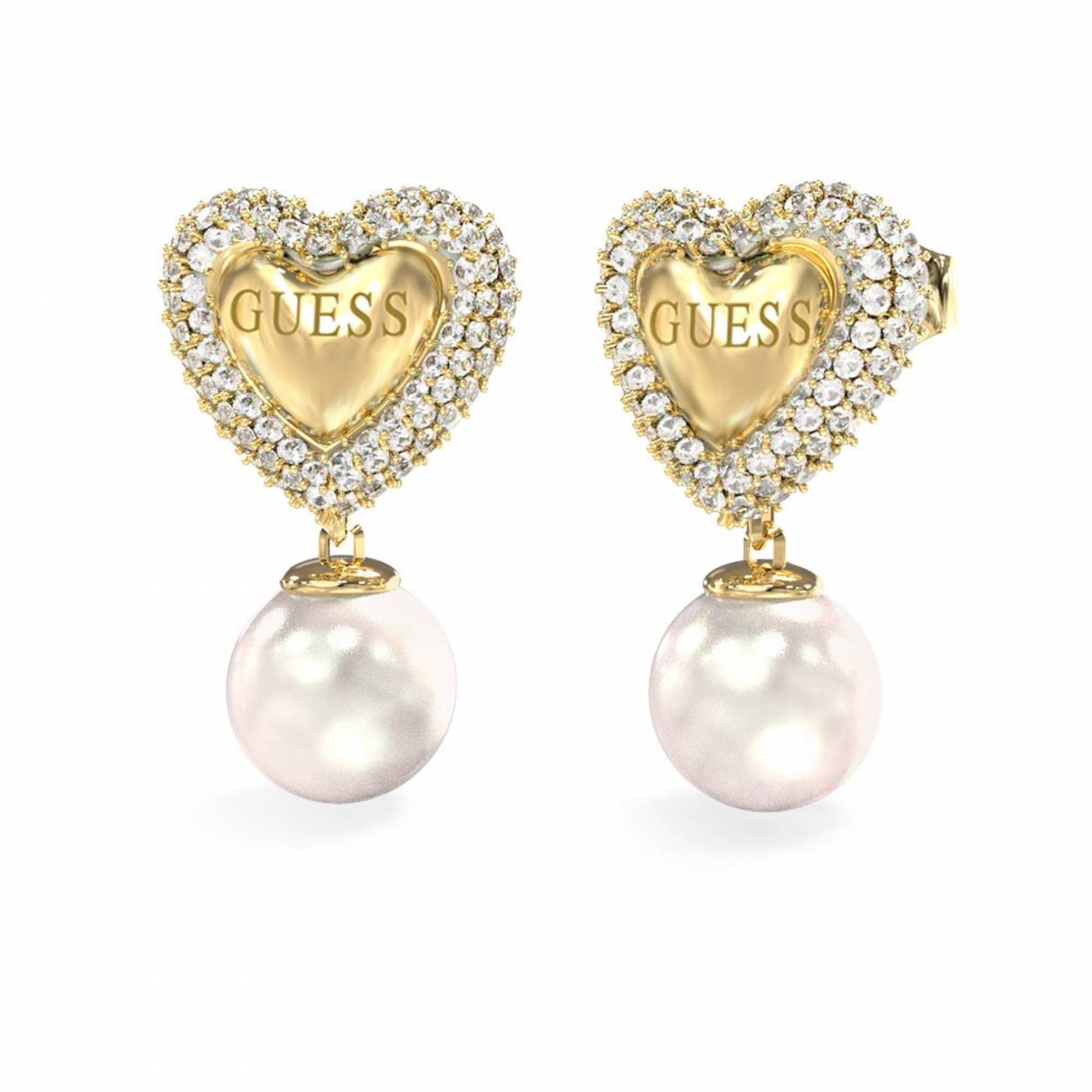 GUESS STEEL BELOVED JUBE06006JWYGT/U Σκουλαρίκια Χρυσά Με Καρδιές Με Κρεμαστές Πέρλες