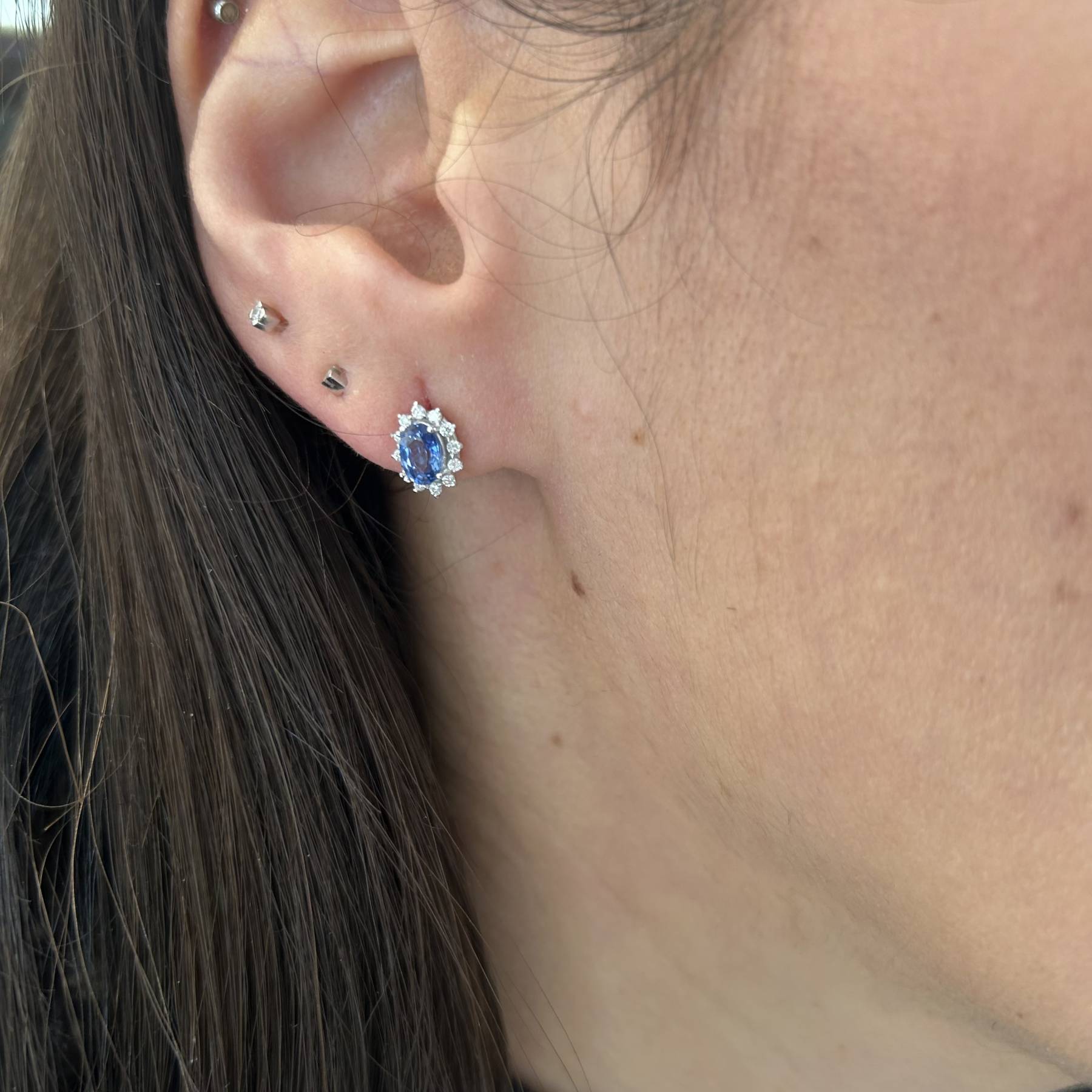 Λευκόχρυσα Σκουλαρίκια Ροζέτα με Ζαφείρι και Διαμάντια 18 Καράτια