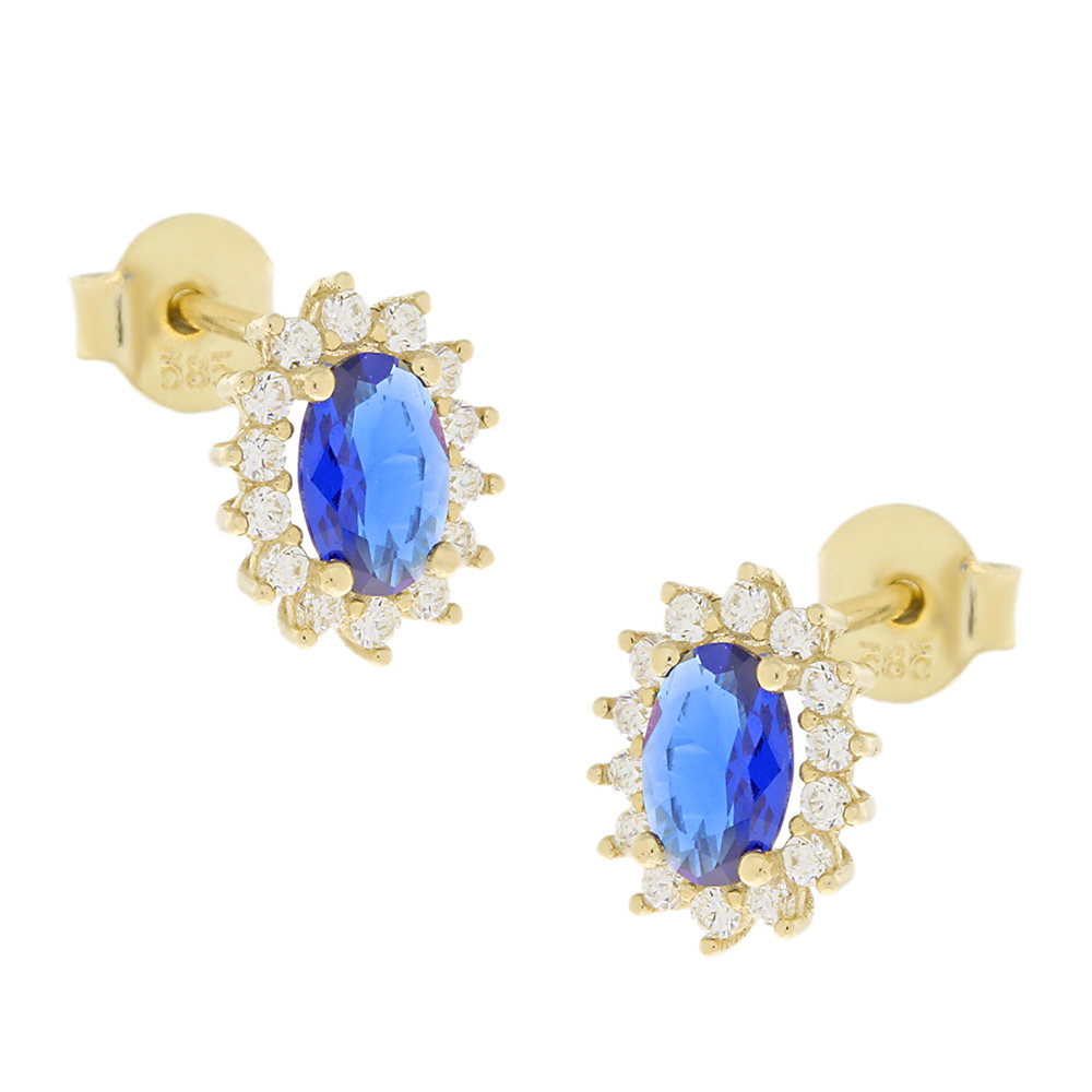 Χρυσά σκουλαρίκια 14 καρατίων από κίτρινο χρυσό, στολισμένο με λευκες πέτρες ζιργκόν. Δωρεάν τα έξοδα αποστολής σε όλη την Ελλάδα.