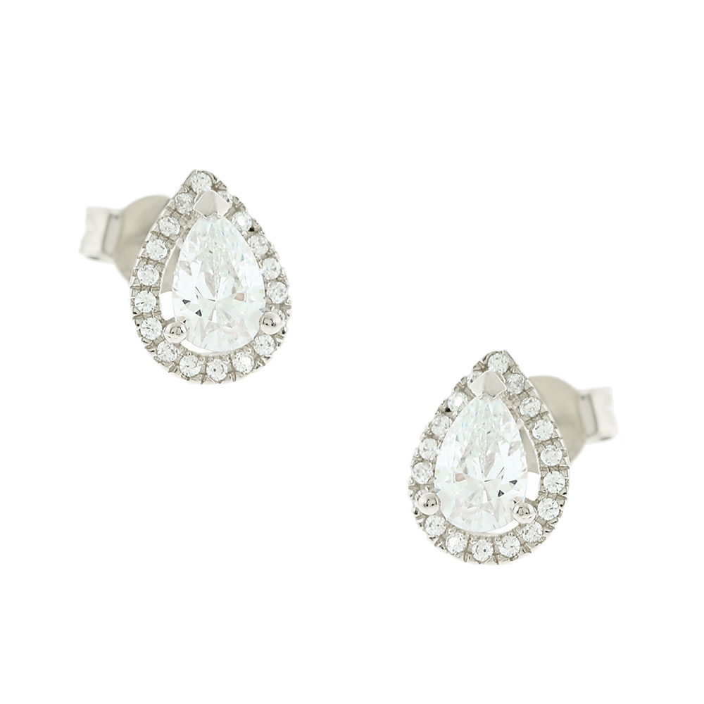 Χρυσά σκουλαρίκια 14 καρατίων από λευκό χρυσό, στολισμένο με λευκες πέτρες ζιργκόν. Δωρεάν τα έξοδα αποστολής σε όλη την Ελλάδα.
