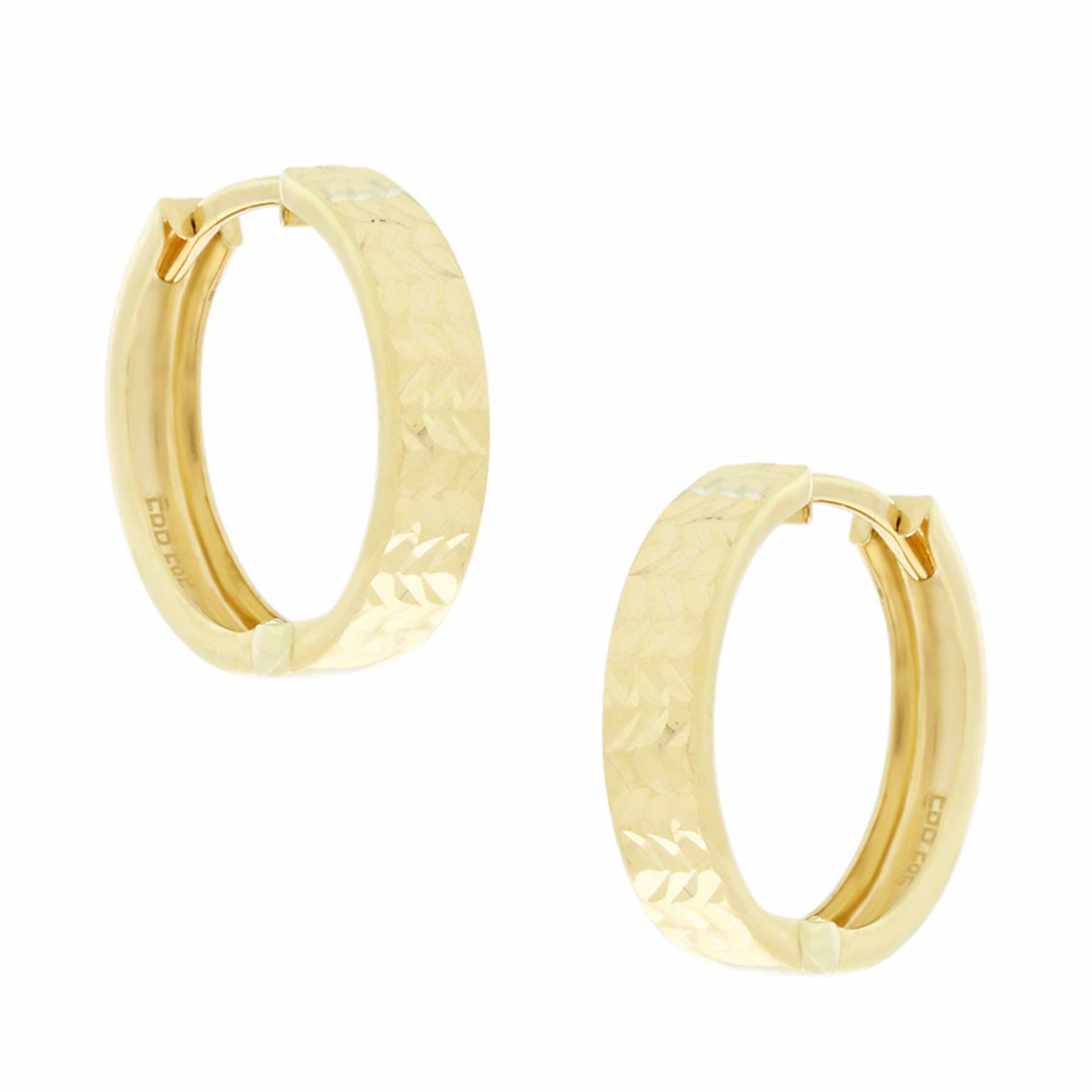 Χρυσά σκουλαρίκια 14 καρατίων σε κίτρινο χρώμα με ζαγρέ φινίρισμα.
