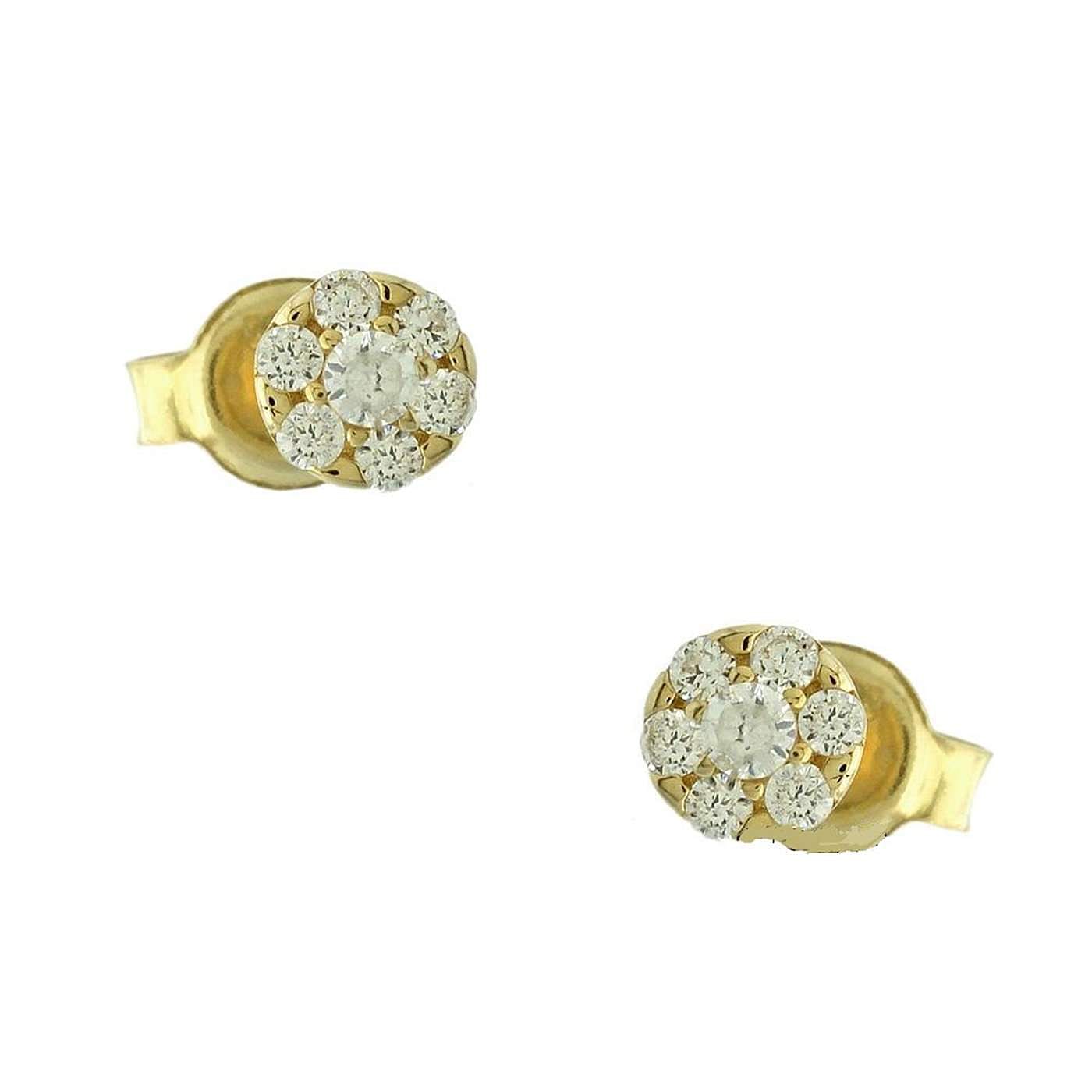 • Χρυσά σκουλαρίκια 14 καρατίων σε κίτρινο χρώμα στολισμένα με πέτρα ζιργκόιν.