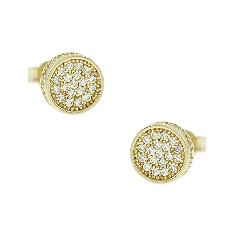 Χρυσά σκουλαρίκια 9 καρατίων από κίτρινο χρυσό, στολισμένα με πέτρες ζιργκόν.