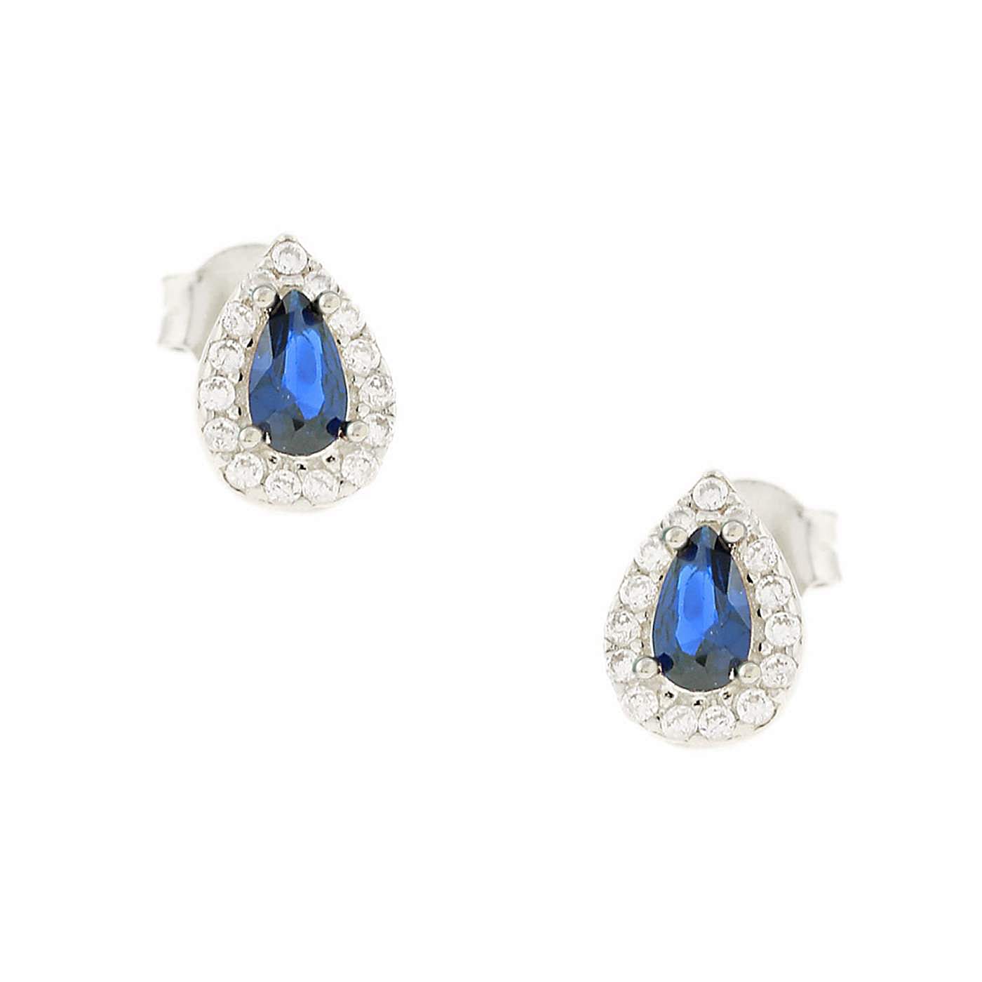 Σκουλαρίκια από χρυσό 14 καρατιών σε λευκό χρώμα με μπλε πέτρα στο κέντρο και λευκά ζιργκόν περιμετρικά. Δωρεάν έξοδα αποστολής και αντικαταβολής σε όλη την Ελλάδα.