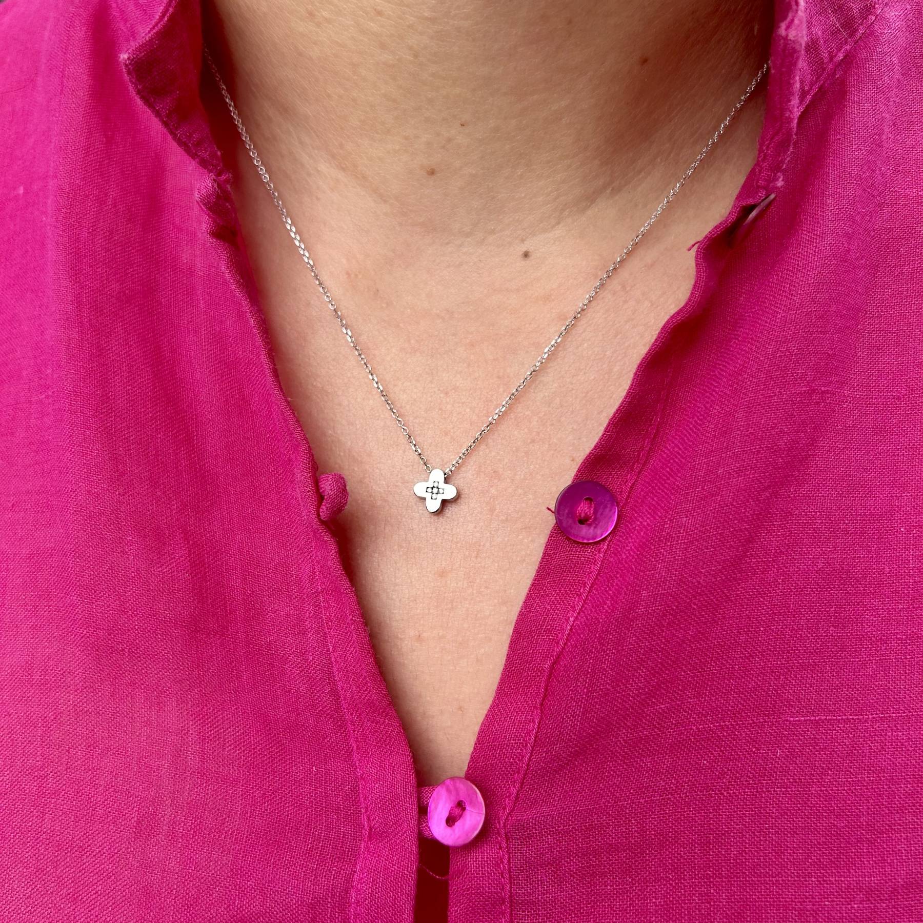 Κολιέ από χρυσό 14 καρατίων της εταιρείας Ekan, με αλυσίδα μήκους 45cm. Εντυπωσιακό σχέδιο με μοτίφ σταυρό, στολισμένο με 4 διαμάντια DI=0.02. Δωρεάν τα έξοδα αποστολής και αντικαταβολής σε όλη την Ελλάδα.