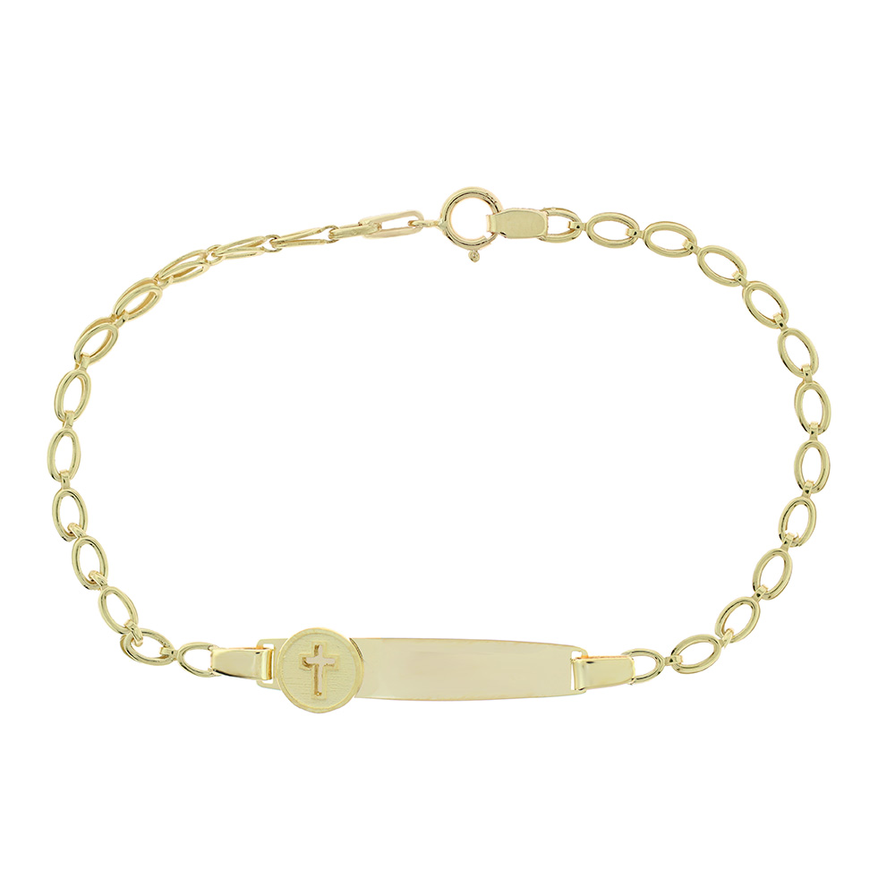 Εντυπωσιακό παιδικό βραχιόλι - ταυτότητα κίτρινη K9 διακοσμημένη με σταυρουδάκι