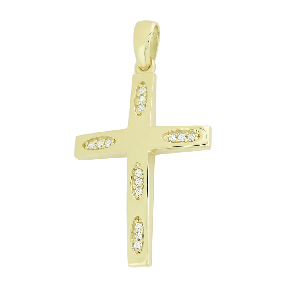 Γυναικείος Σταυρός Κίτρινος με Πέτρες 14 Καράτια